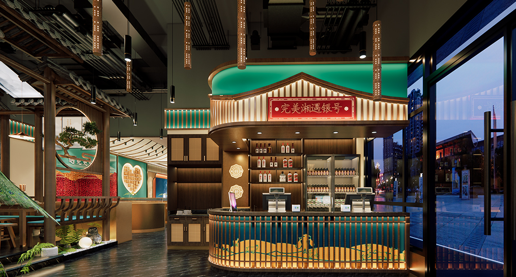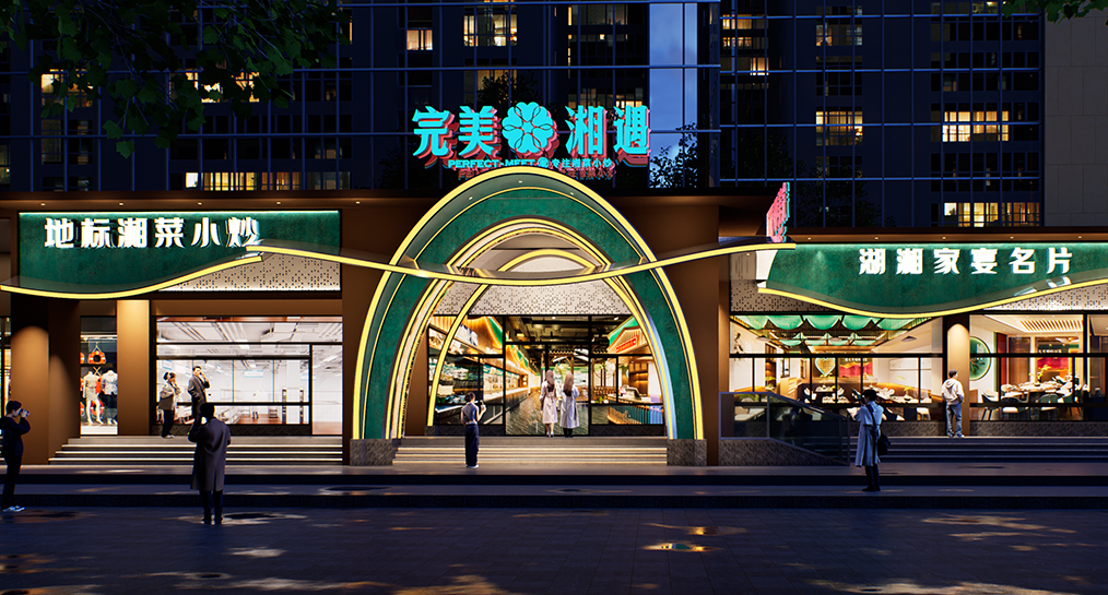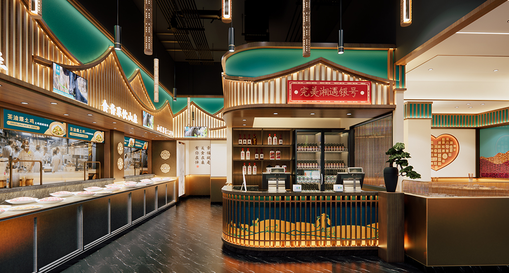 完美湘遇深知,优秀的餐饮体验不仅仅局限于美食本身,更在于整体的用餐环境与氛围。合作设计团队以超前的创意和设计理念,营造出既符合品牌调性又舒适的品牌文化和用餐环境,让消 费者能感受到视觉与心灵的双重盛宴。